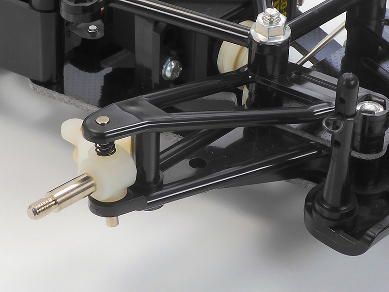 - 3-point suspension setup places the rear gearbox on a CVA oil-dampened T-bar. Ground clearance is adjustable (front: 2 settings, rear: 3 settings) according to running surfaces.
