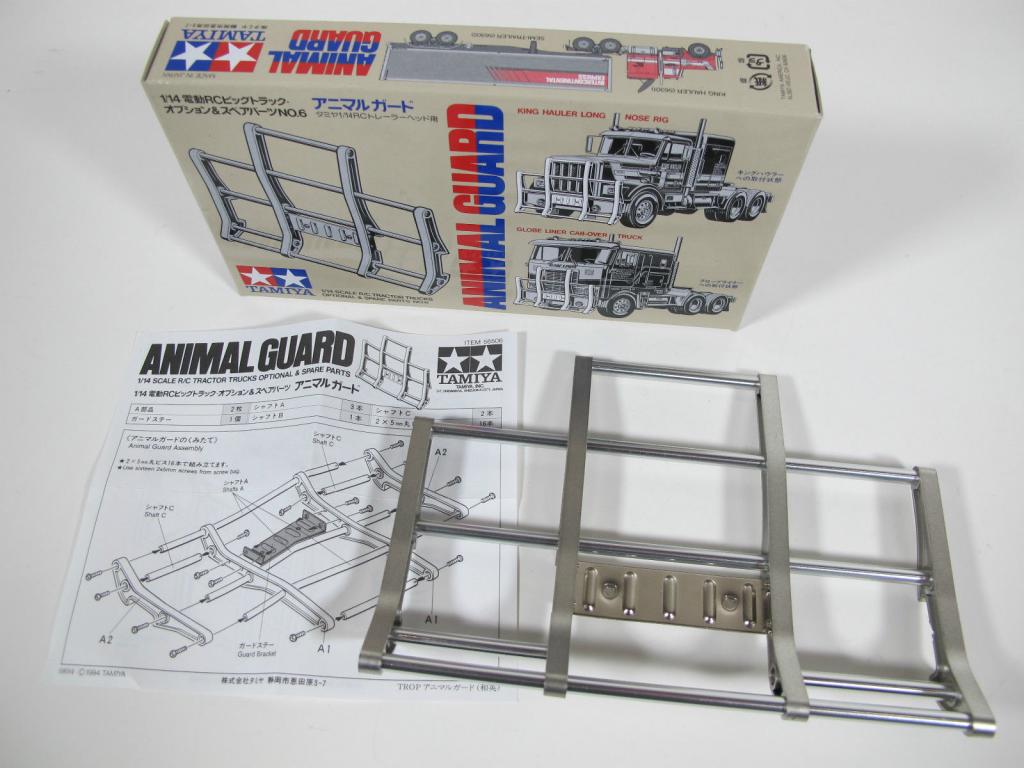The Tamiya Truck Animal Guard is an accessory for the Tamiya King Hauler and Globe Liner 1/14 Radio Control Tractor Trucks.