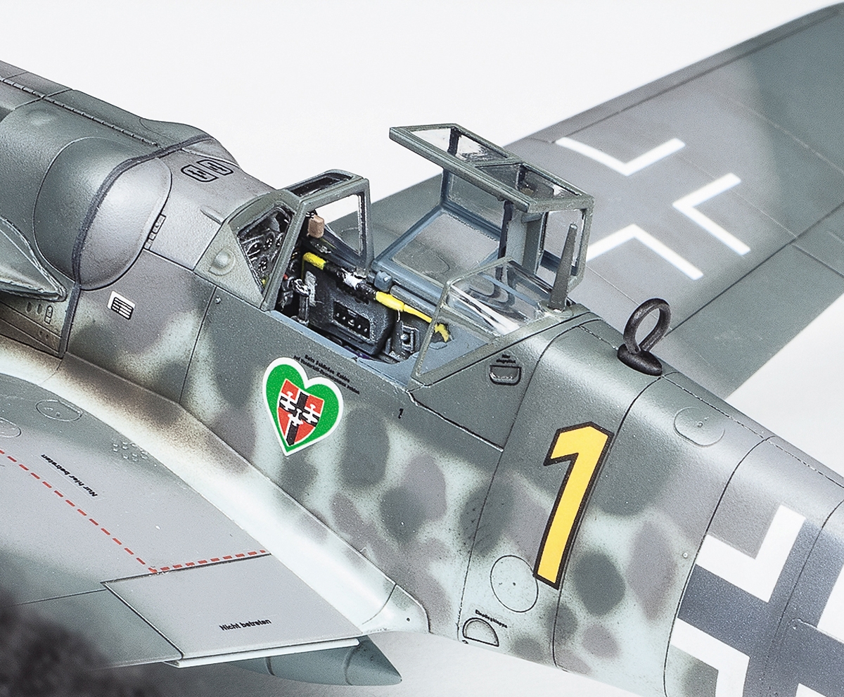 • The cockpit is inserted after left and right fuselage halves have been put together. It has an accurate interior with streamlined assembly.