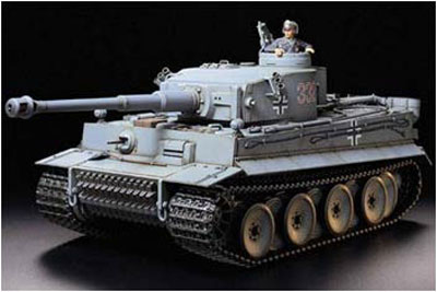 Powerful Engine Sound Just about every sound the real Tiger I made can be made on Tamiyas 1/16 scale Tiger I. When the tank is switched on, either a manual crank start sound, or an automatic engine start sound is heard. After your engine is turned over, its time to move the tank around. As you accelerate, the engine thundering increases just like the real Tiger I. Stop the tank, and the sound of authentic idling begins. Once you have located your target, rotate the massive turret and listen to the grinding of gears of the real German war machine. The more you control this R/C tank, the more you will feel like the commander of the full size Tiger I !
