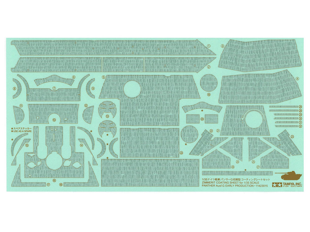 ★This is a 1/35 scale plastic model assembly kit. Length: 256mm, width: 96mm. ★An early production Ausf.G Panther is recreated, with realistic details such as turret and hull weld lines. ★Features plenty of accessories including depictions of spare track links. ★Turret rear escape hatch is a moving component, and allows inspection of hull interior details such as gun breech. ★Commander, driver and radio operator hatches can be assembled open or closed. ★Suspension arms are separately molded parts. ★Features belt type tracks. ★Comes with a figure in overalls and four marking options in the box.
