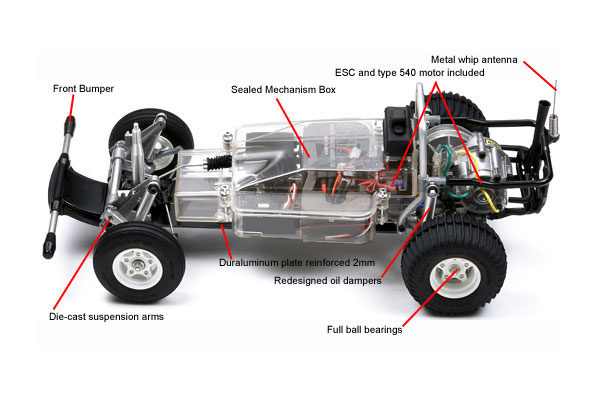 - Newly designed die-cast front and rear suspension arms, front axle, and wheel hubs.