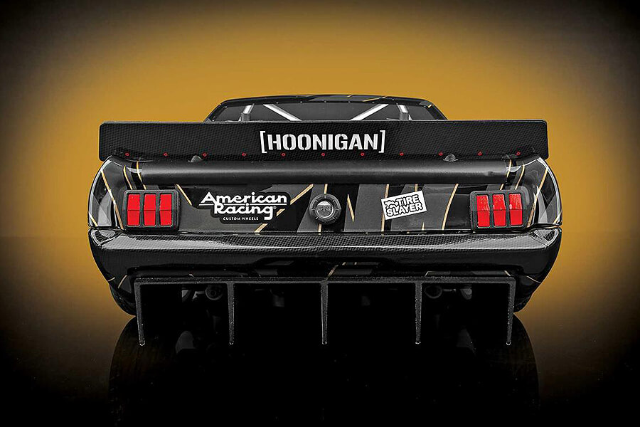The engineers at Team Associated spent countless hours capturing many of the details synonymous with the 1965 Ford Mustang Hoonigan Hoonicorn. Features including officially licensed American Racing VF503 Wheels, rear diffuser, molded intake and turbos, scale brake rotors, and more!