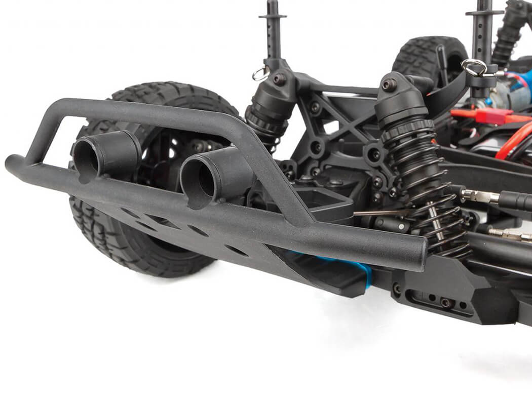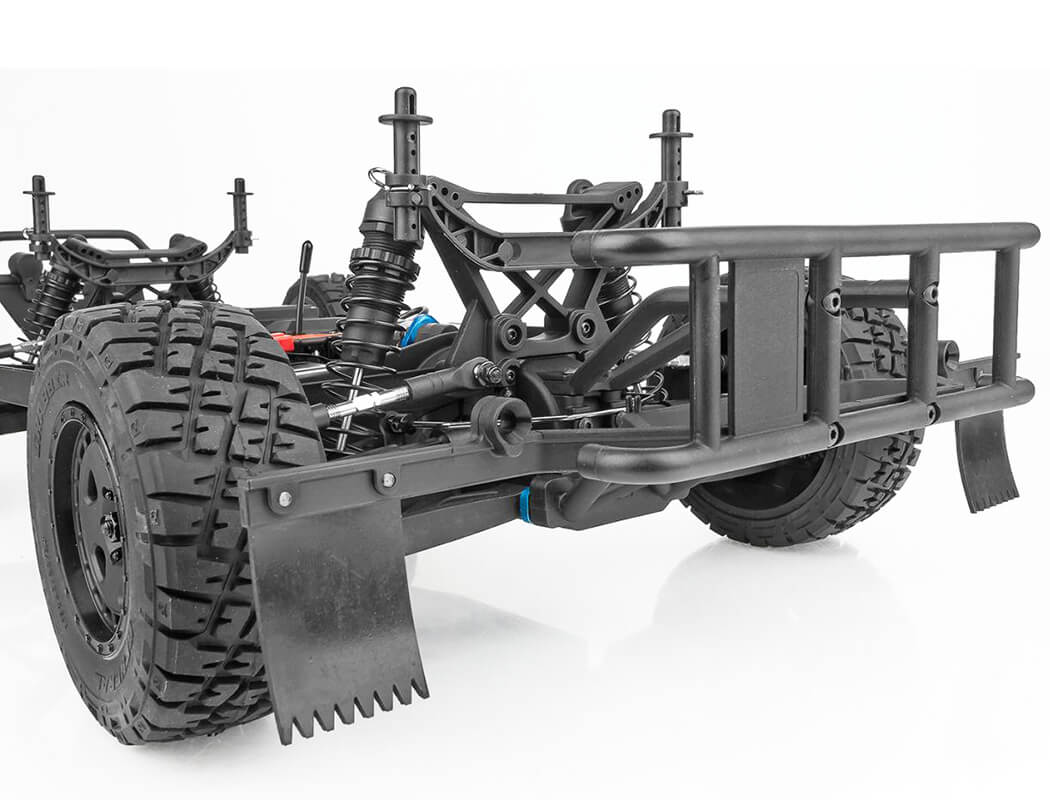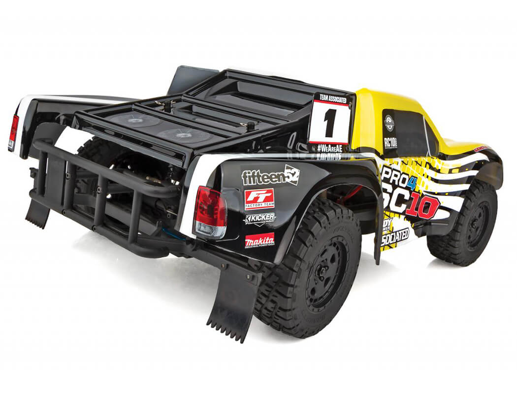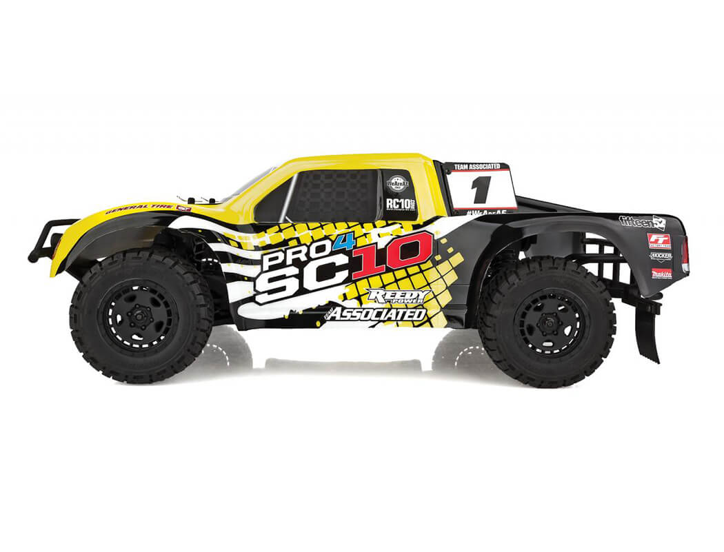 Team Associated’s Pro4 SC10 is a Ready-To-Run RC electric short course truck. The Pro4 SC10 is both all show and all go! Features include the mighty Sport 550 Reedy Power motor, 3300mAh 2S WolfPack LiPo battery, a water-resistant enclosed receiver box, adjustable oil-filled coil-over shock absorbers, and four-wheel independent suspension. The gearbox includes heavy duty three sealed gear differentials. The short course proudly rolls and jumps on Fifteen52 Turbomac HD wheels wrapped in realistic off road General Tire GTR GrabberTM all-terrain tires.