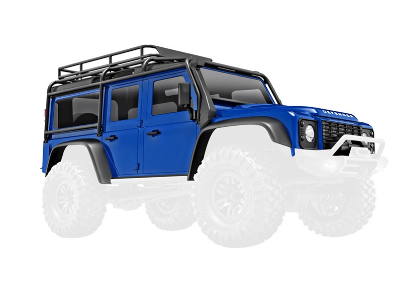 Body, Land Rover Defender, complete, blue (includes grille, side mirrors, door handles, fender flares, windshield wipers, spare tire mount, & clipless mounting)