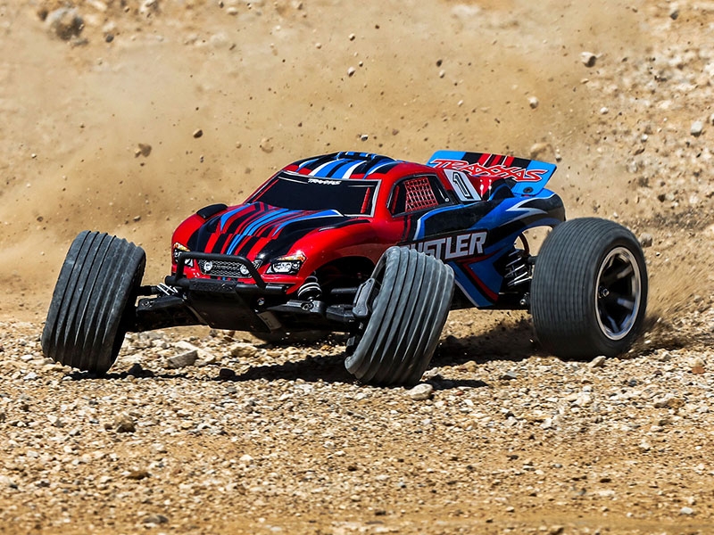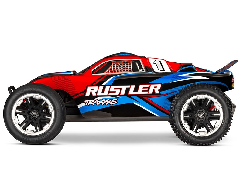 Traxxas Rustler® sits low and wide for maximum high-speed stability, with fast reflexes and an agile feel not found on other trucks. New factory-installed heavy duty suspension components allow Rustler to push the performance envelope to the extreme with next-level durability. Rustler delivers power-sliding, full-throttle fun and a blistering 35+ MPH top speed in a Ready-to-Race® package backed by Traxxas’ legendary innovation.