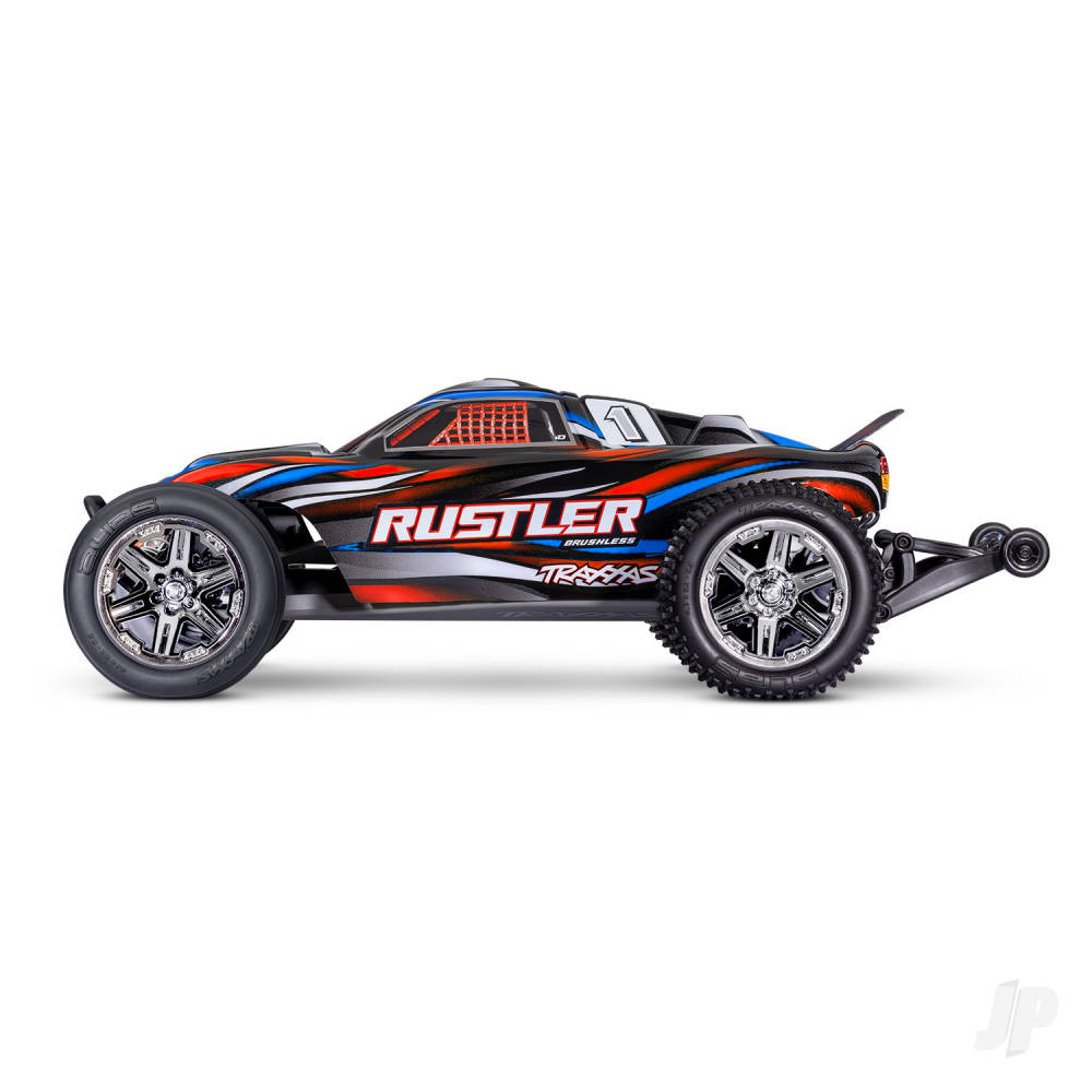 Rustler’s waterproof BL-2s brushless power system ramps up the fun with more torque, faster acceleration, and less maintenance than comparable brushed power systems. The BL-2s is a model of efficiency and refinement, offering more power than before with the safety and convenience that only Traxxas can deliver.