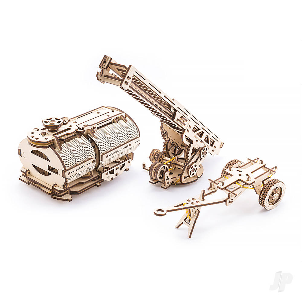 UGEARS Truck Series with THREE Additions – Tanker, Fire Ladder, Trailer Сhassis – a new generation of our mechanical models with more technical elements and details that make it even more exciting. The Set of Additions for UGM-11 Truck – a perfect way to turn your Truck into Tanker or Fire Truck with a ladder and assemble the Truck’s trailer.