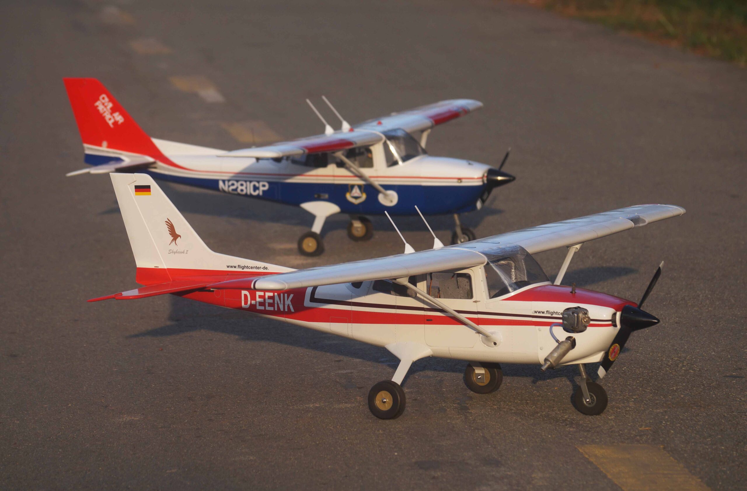 VQ Models introduced the Cessna 172 Skyhawk in size 50 EP-GP , this is a popular size when you have a lot to choose from , you can go for a Nitro engine 55 -2 stroke , an 82 – 4 stroke nitro engine or a 10cc gasoline engine . You can also use an electric motor (like the Boost 50 electric motor ) and easily install a 4S – 5000 mAh battery. And no matter what you attach, this Cessna 172 still flies like a high wing sport plane .