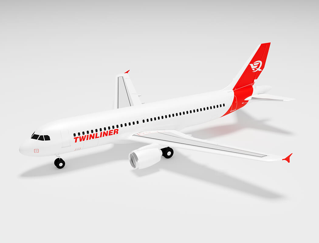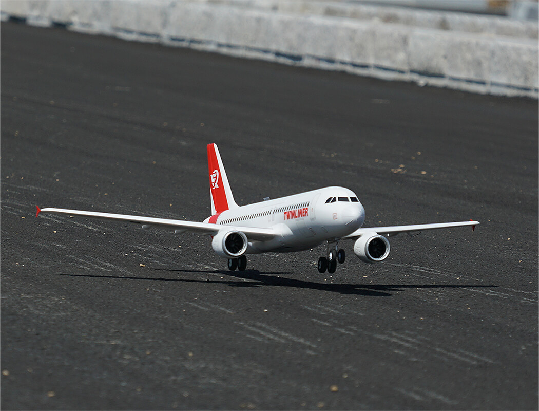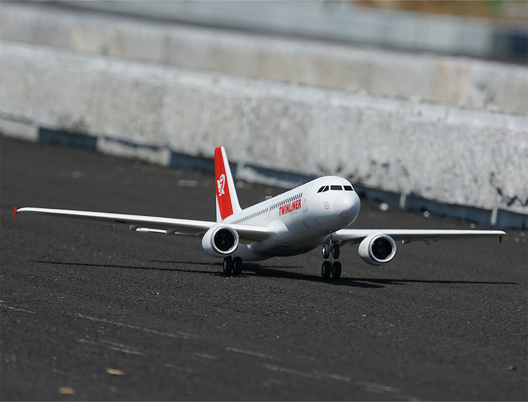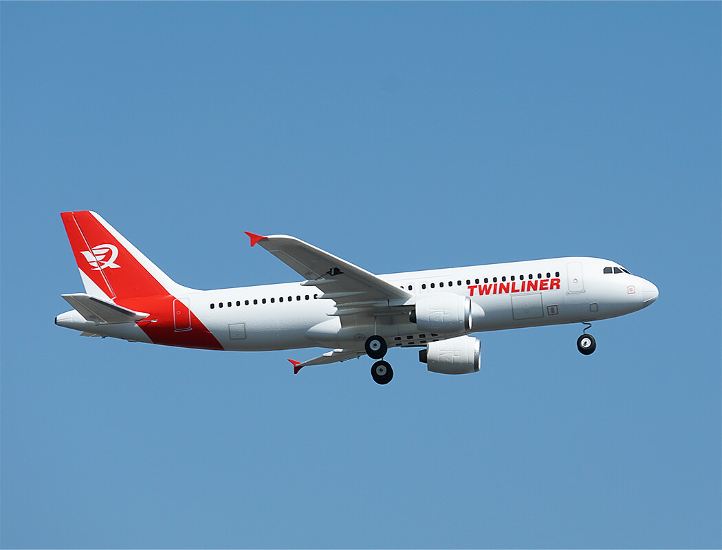 Both front and rear landing gears are fitted with dual wheels, which equips the plane with a strong grip to maintain accuracy and stability while taxiing on the ground before takeoff or after landing. The battery compartment is located in the middle of the fuselage, which allows the plane to easily achieve a proper Center of Gravity. Assembly is quick and simple with no glue required. The model is conveniently sized for flying at large parks, sports fields, or traditional RC flying fields and so it can be stored and transported without disassembly. It can fit fully assembled in just about any vehicle. The Twinliner is fully painted and available in two versions, decals pre-applied or NOT pre-applied (but included in the box) which is ready for any further painting or customisations.