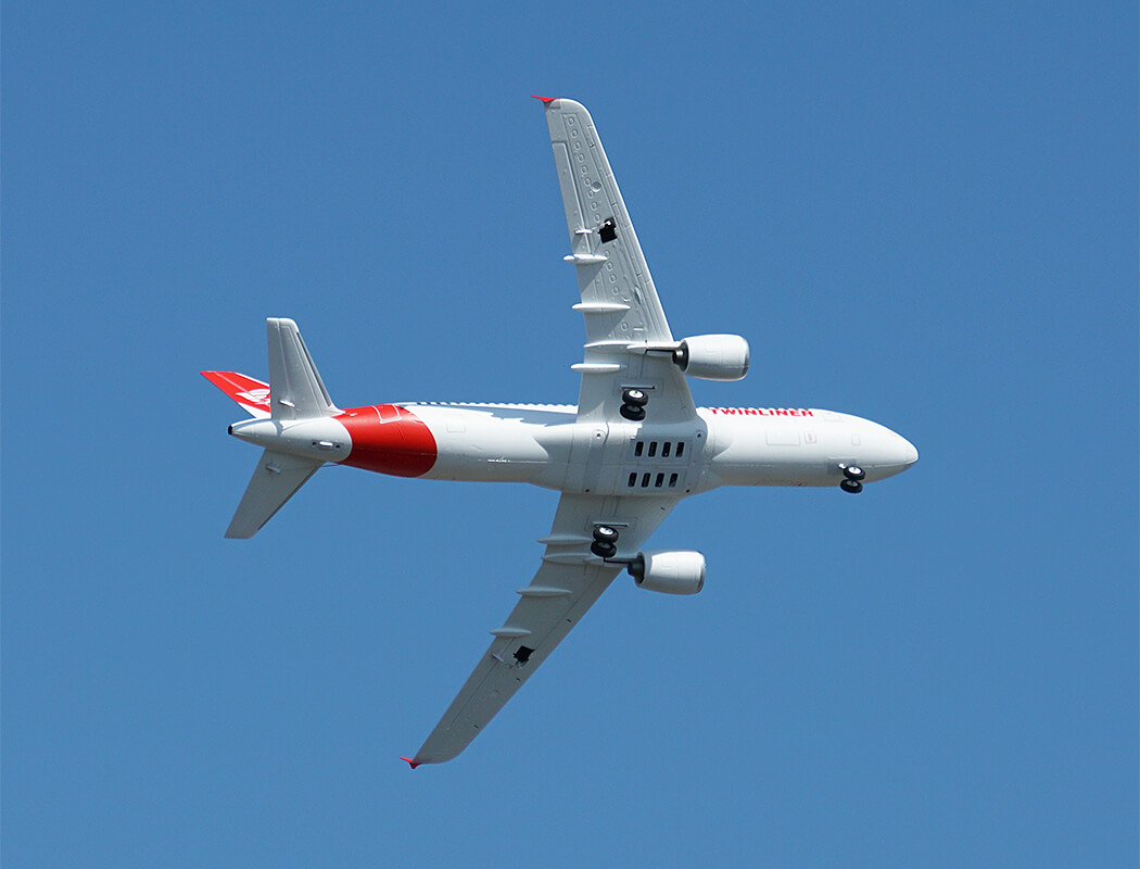 XFly Model is excited to announce its first passenger EDF jet Twinliner in the twin 40mm EDF lineup. The Twinliner features a scale outline and details of a classic airliner including twin efficient engines and landing gears with dual wheels. The factory-installed power system, twin 40mm fans with 1413-KV5000 brushless motors and twin 20A brushless ESCs, paired with a 4S LiPo battery, delivers an abundance of thrust for vertical climbs, rolls, loops and other maneuvers. With sensible throttle management, the Twinliner features a potential flight time of 5-10 minutes.